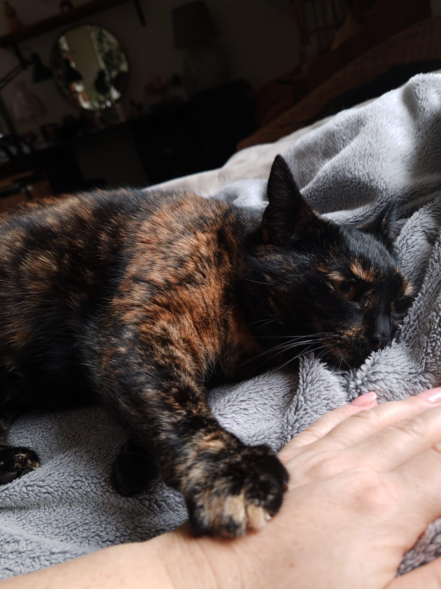 Aksamitka, w swoim domu Luna, już na własnych włościach. Akcja była błyskawiczna. Moja córka straciła kotka, który miał 16 lat i zachorował na nadczynność tarczycy. Coś jeszcze musiało go "żreć" bo pojawiło się porażenie łapek i robił pod siebie. Przyszedł czas na rozstanie. W domu jest jeszcze jeden kotek, pies i 2 szynszyle. Przedwczoraj pokazałam córce Lunkę, od razu zaiskrzyło, córkom czyli moim wnuczkom , też się spodobała. Wczoraj postanowiła pojechać po nią. Murka zgodziła się podwieźć kicię do Krakowa i wszystko potoczyło się błyskawicznie. Lunka to niezła kluseczka, na pewno czeka ją odchudzanie. Córka ma mieszkanie ze schodami, więc będzie miała gdzie biegać. Po przyjeździe do domu już jadła i piła. Spała na łóżku 2 godziny, mruczy, dopieszczała się z wnuczką i córką. Na psa trochę fuka. Kot Benio przez 2 godziny chodził po domu i śpiewał. Będzie dobrze.8 points