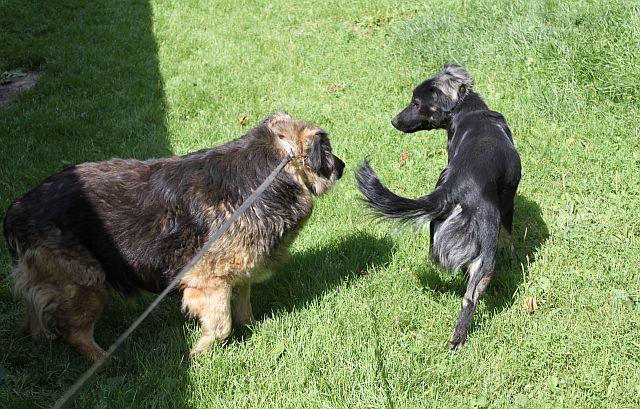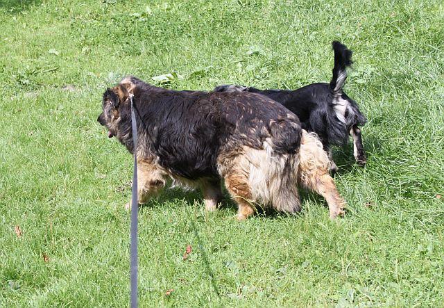 Pani zapłaciła za transport do Sandomierza. Przynajmniej tyle. A Irysek wrócił na stare śmieci i się rozbisurmanił. Po ogrodzie chodzi jak torpeda i wszystko podlewa bogato drapiąc łapkami ziemię. Psy, które zna ok, ale pojawił się nowy przybysz, to chciał go zjeść. Z tej strony go nie znałam, rzucał się jak wściekła wiewiórka - ze względu na gabaryty Iryska wyglądało to nieco zabawnie:) Oczywiście oba psiaki były na smyczach, więc wszystko działo się na odległość, ale Irysek nie spuszczał z nowego wzroku i wciąż do niego wyrywał. -