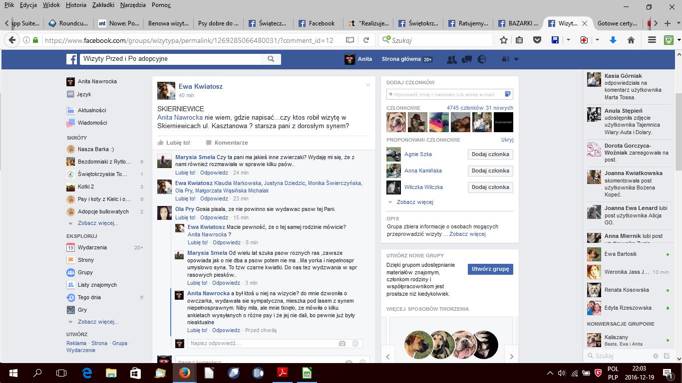 no i co sądzicie o tym domku? " Zaraz podam Pani numer telefonu do mojej koleżanki która jest sąsiadką tej Pani, ona wszystko wyjaśni. Poza tym zawsze można powiedzieć tej Pani że musi odebrać psa osobiście - nie zrobi tego. DO naszego schroniska też wieloktornie dzowniłą i chciała psa ale ostatecznie mówiła że ma za daleko i rezygnowała z adopcji. " no i zadzwoniłam do tej sasiadki...pani też zajmuje się adopcjami ze schroniska w Skierniewicach i mówi, ze owszem pani fajna, dom ok, jak trzeba było to przyjeżdżał wet, ale...ale pani ma psy na chwilę ...miała yorczkę, którą rozmnażała, miała bernenkę - chciała rozmnażać, ale suka nie chciała i oddała ją z powrotem, swoją colie oddała do schronu. Że w sumie w ciągu roku miała z 8! psów, w tym 3 z różnych fundacji z daleka (nie rozumiem, czemu wydali jej psy w typie rasy - suki! - nieciachane), które jej przywiozły pod dom. Pani ma takie zrywy, jest okres ciszy a potem nagle chce psa, jednego dnia chce małego, potem dużego, potem jednak nie da rady przyjechać Mnie powiedziała, że jej mąż umarł pół roku temu i teraz dojrzeli do psa, a ta sąsiadka mowi, ze męża to ona pochowała 5 lat temu. Wg mnie nie ma sensu robić wizyty, bo tak jest, że wszystko będzie niby cacy. Nie zaryzykuję. -