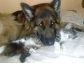 Otóż stało się jak się stało i od środy staliśmy się 'domem tymczasowym' dla pewnej suczki ze schroniska. Wygląda mi na mieszankę owczarka niemieckiego z huskym, oceniona została na rok, ale wydaję mi się, że ma więcej latek.