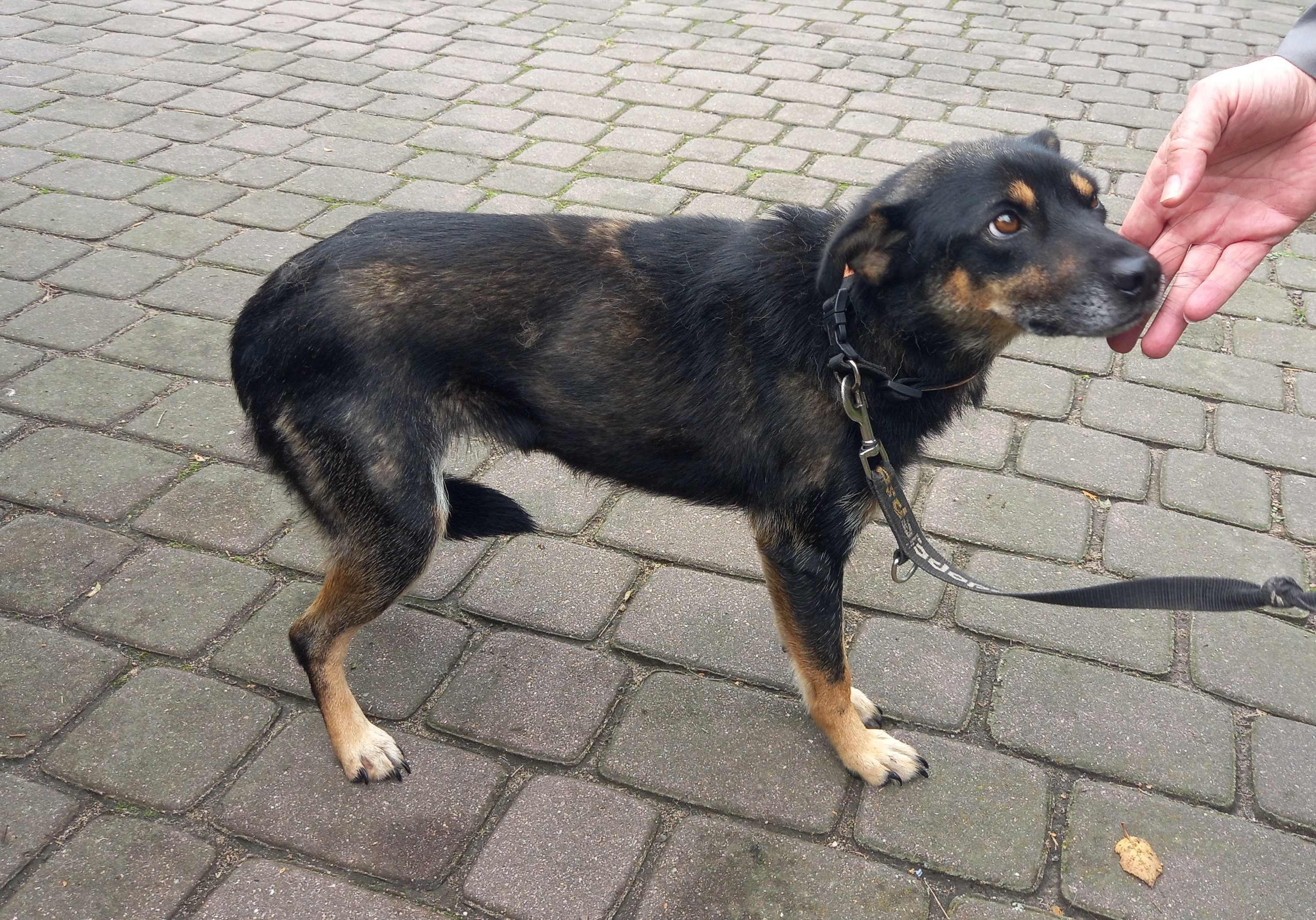 Rózinka jest bardzo przyjazna, ma apetyt i wg mnie już lepiej wygląda. Już żeberka tak nie wystają. Nadal ma lęk przed wychodzeniem z kojca, tu się czuje bezpiecznie, ale pracujemy i nad tym. Poznanie na wspólnym spacerze z moimi suniami zostawiam, jak wróci Tomek, czyli jutro - co dwie pary rąk, to nie jedna :). Igusia i Mańka się zawsze wycofują, a Bezia to super terapeutka dla bezdomniaczków, ale zawsze 1 procent niepewności jest.