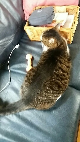Ja też chce taka kanapę. A to jeden z kocurów. Już na nie nie szczeka. Koty zeszły z antresoli. Razem jedzą. Fryga je ignoruje. Skończy się wspólnym spaniem jak myslę. -