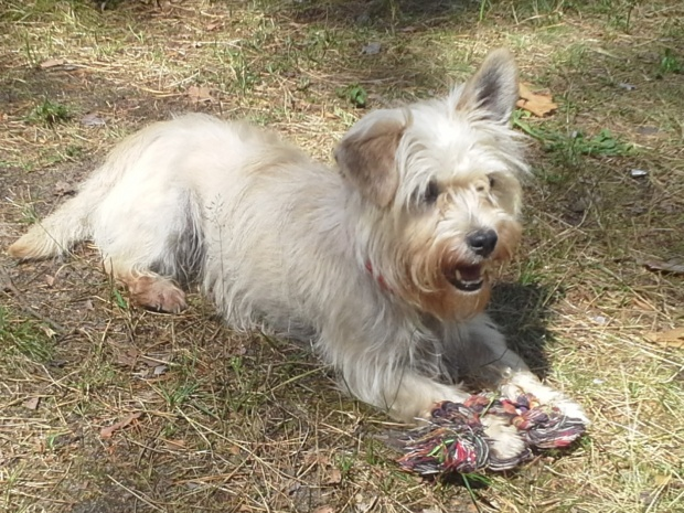 5. Fryga to mała suczka w typie teriera. Prawdopodobnie ofiara wakacji. Sięga do połowy łydki. Waży ok.6 kilo. Ma lekko szorstką sierść w kolorze bezy. Jest młoda (ok.1,5 roku) i łagodna. Lubi dzieci i inne psy. W nowym miejscu jest nieśmiała, cicha i spokojna. Ładnie chodzi na smyczy, bez problemu jeździ samochodem. Obecnie przebywa w domu tymczasowym pod Warszawą. Jest odrobaczona, zabezpieczona przed kleszczami, zaczipowana, zaszczepiona na wściekliznę. Przed wydaniem zostanie wysterylizowana. Obowiązuje wizyta przedadopcyjna i podpisanie umowy.