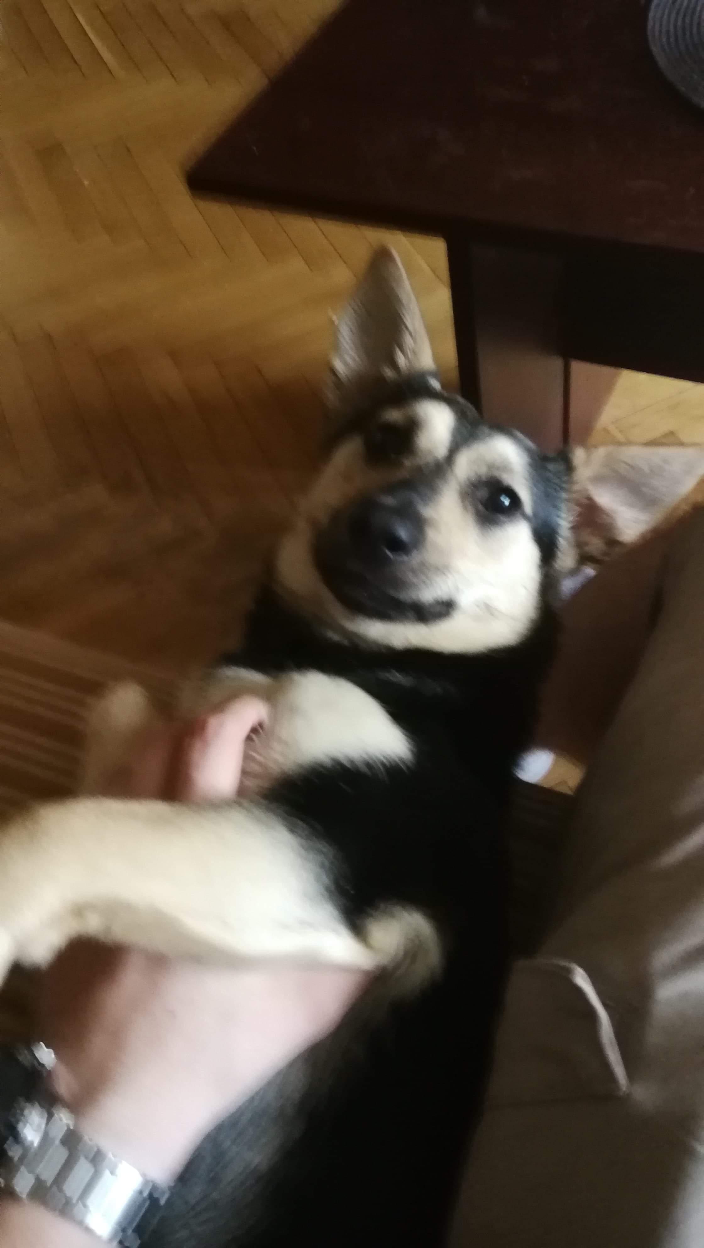19. Ami robi postępy w zostawaniu w domu. Tylko jednego dnia zrobiła demolkę. Prawdopodobnie dlatego, ze było uchylone okno i słychać było hałasy z podwórka. Ona jest bardzo czujna na to co dzieje sie na zewnątrz. Uczy sie też podstawowych komend. Poprosiłam o zdjęcia.