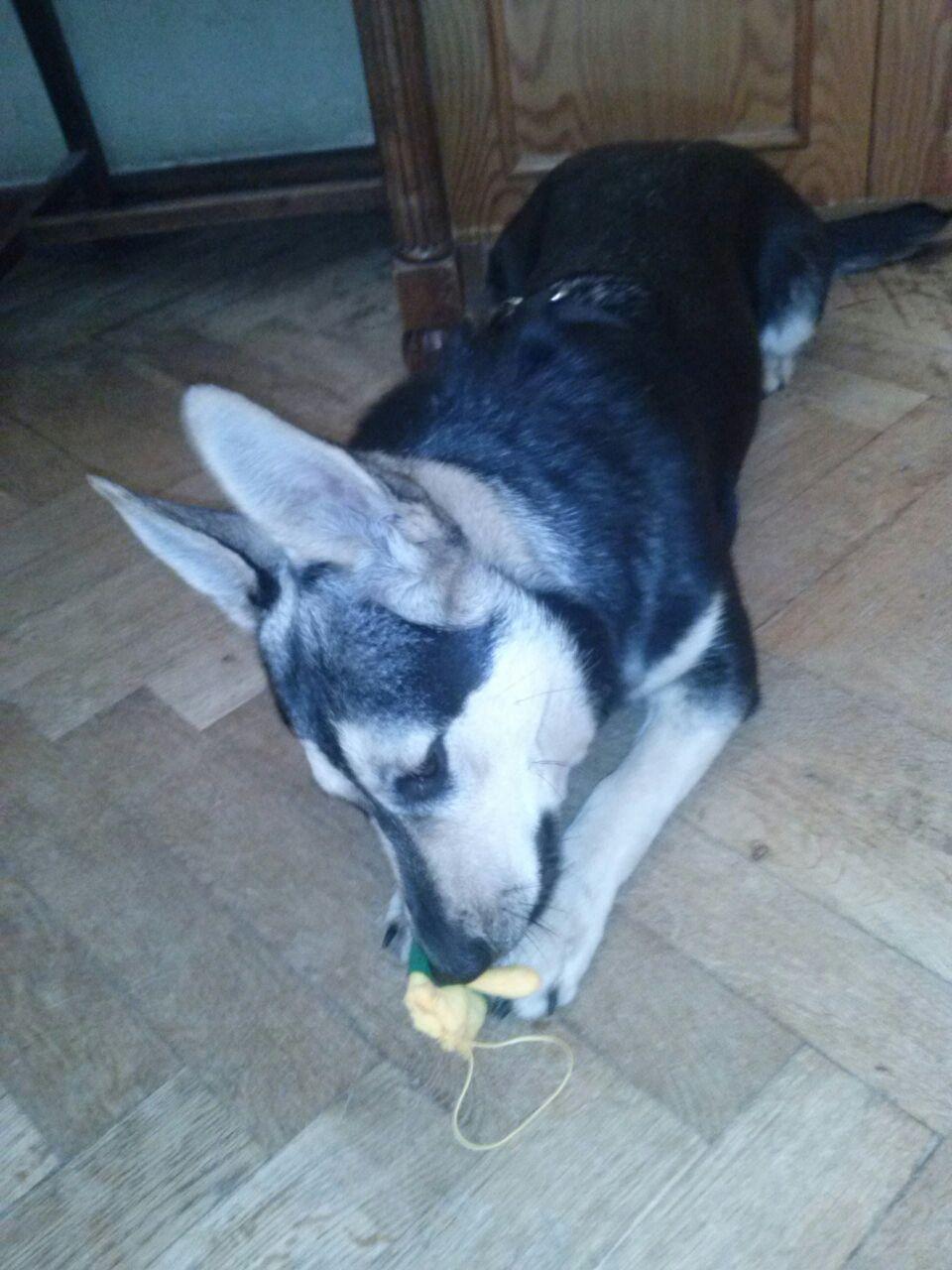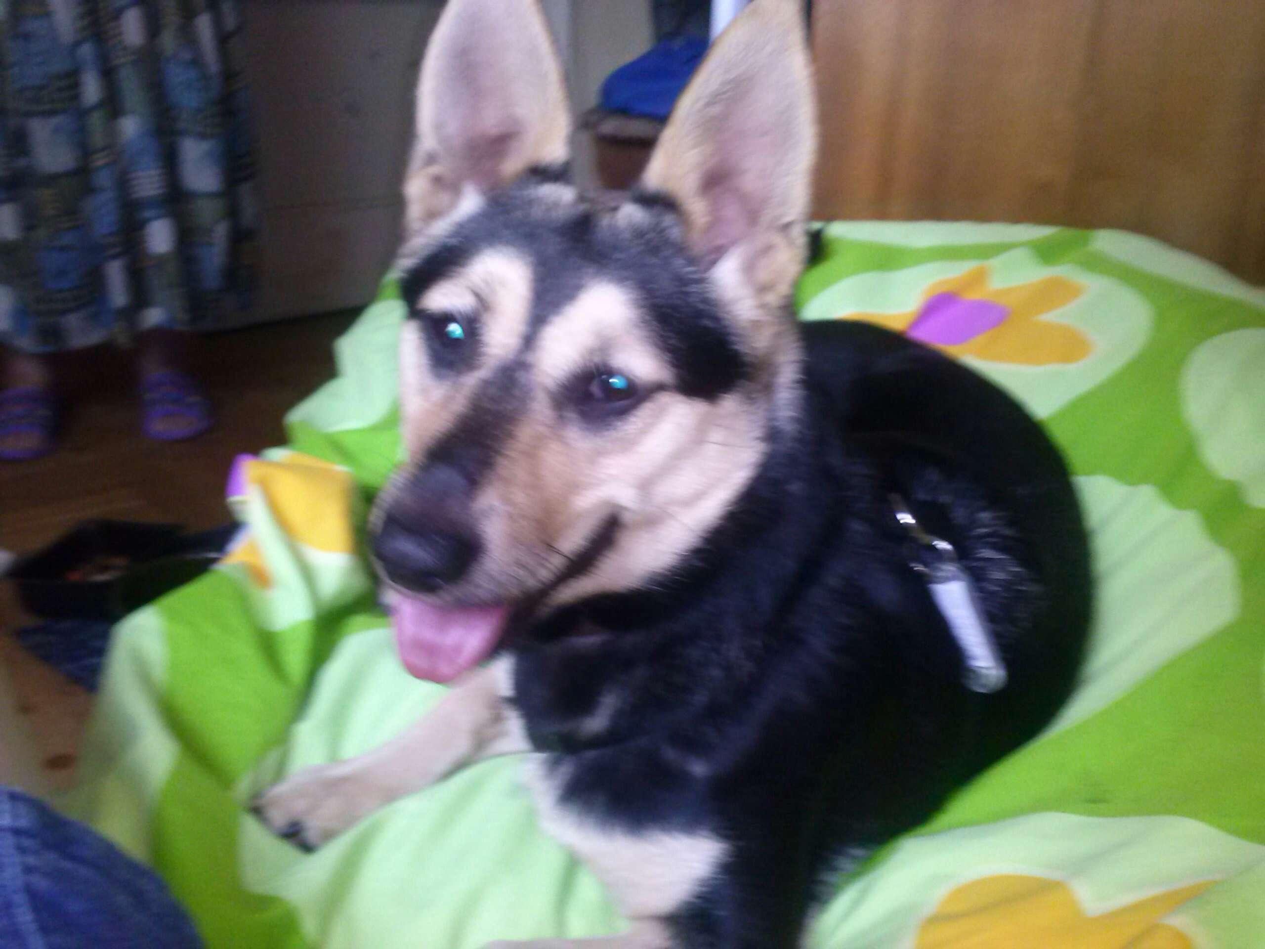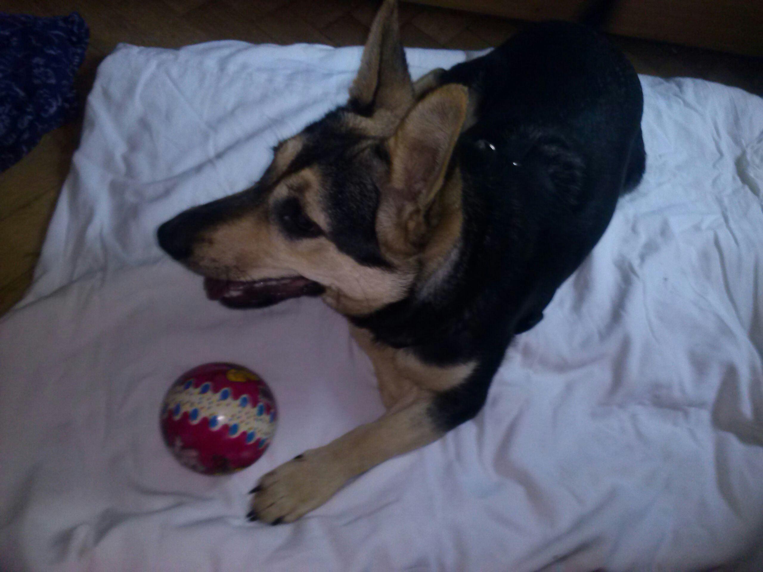 Napisałam ok. 10 miesięcy. W książeczce ma wpisany rok. Kto to wie. Magda, która przywiozła ją z Gliwic, powiedziała, że w schronie była 10 dni. Ale nie wiem czy to możliwe, bo przecież kwarantanna trwa dwa tygodnie (?). Z drugiej strony nie jest wychudzona, nie rzuca sie na jedzenie, nie śmierdzi, nie boi się kija, ani ludzi i nie jest zdziczała.