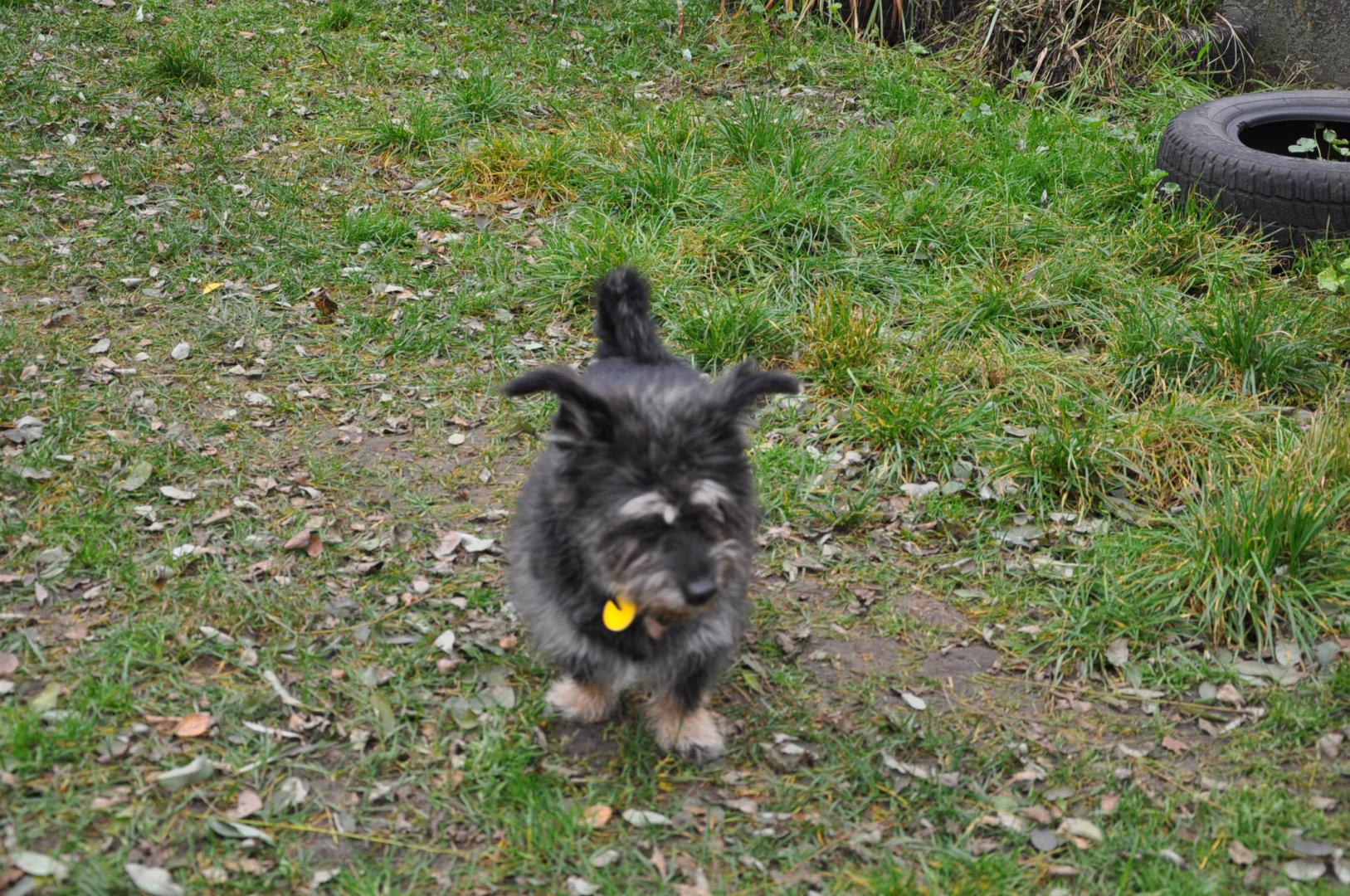 Aldrumko Aszki nie można spuścić z oka. Ostatni wyczyn to za jednym razem 5 wyrośniętych już kurczaków załatwiła. Było też chyba sześć kur z jednym zamachem. Ona dusi i zakopuje. Jedna z historii . Pielę niedaleko bramki do ogródka przed domem. Bramka była częściowo otwarta i patrzę, że za nią coś leży. Wyglądało to jakby to była jaskółka przysypana trochę ziemią. Pomyślałam, że trzeba ją pochować więc ciągnę i wyciągam z ziemi naszą wielką czarną kurę a to co wzięłam za jaskółkę to była końcówka jej skrzydła. Mord ona ma we krwi. Ostatnio zaatakowała jeża. Dobrze, mąż to zauważył i odciągnął. To jest jej chyba jedyna poważna wada i przez jak się to ma ograniczone spacerki . Tak to miły przylepny pies. No nie zapomniałam jeszcze o jednym, jak się ją spuści ze smyczy to pędzi przed siebie i trzeba się na wrzeszczeć, żeby i trochę czasu minie zanim wróci.