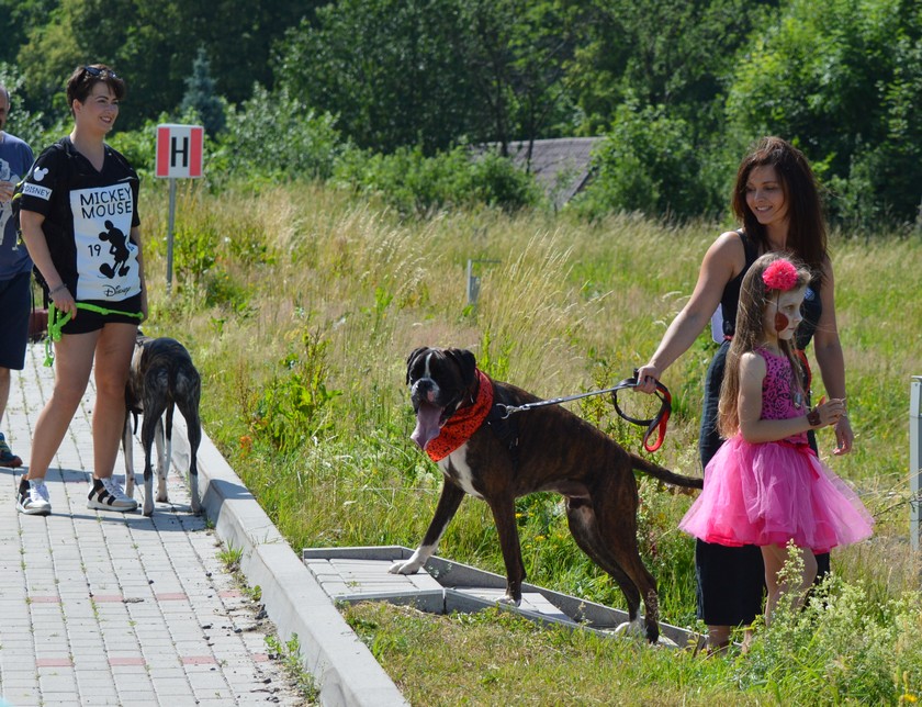 wracam na dgm, mam myszkę - wreszcie się dorobiłam (co prawda teraz piszę ze stacjonarnego, ale jak się umyję - to siadam na lapka i już do Was zaglądam). Wrzucam jeszcze nasze fotki z czerwcowej wystawy :) Dla tych co nie wiedzą - mamy w okolicy centrum edukacji ekologicznej- Izerska Łąka, które po raz pierwszy zorganizowało wystawę "psów gór i Pogórza Izerskiego". Mogły startować też kundelki (wygrał śliczny kundelek- na końcu zdjęcie nagrodzonych - miał sierść jak pluszak z wełny :)). Na 3 miejscu była też śliczna biszkoptowa kundliszonowa suczka. Oszołom Shaduś zdobył 2 miejsce- pękam z dumy (było też trochę psów rasowych m.in. on, golden, jamnik... - łącznie wszystkich 18 sztuk). Przede wszystkim była jednak świetna zabawa, emocji i śmiechu (nie ma jak występować w sukience) dostarczył mały tor przeszkód (a zwłaszcza nieszczęsny rów do przeskoczenia- Madzia Ty nawet nie pisz co widziałaś :P)) Dobra wrzucam foty, bo na laptopie nie mam i siadam po myciu do waszych galerii. Moje wymalowane dziecko na podobieństwo Shadika :P - malowała babka, która prowadzi animacje dla dzieci Jestem dumna z zadymiarza :) A to jeszcze sobotnie "pranie: - niestety zdjęcie z mojej komórki