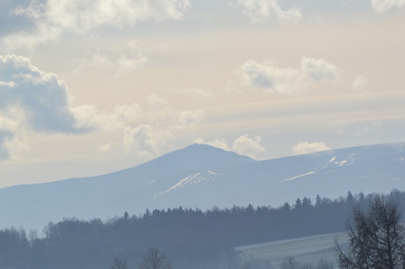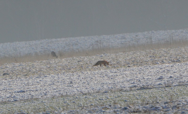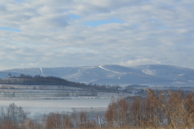 no widzisz, pewnie u Was też są w drogeriach (Bogdan nie będzie musiał piłować :P) a u nas rano było słoneczko i taki poprószony śnieżek (potem to oczywiście stopniało, a teraz nie ma słoneczka , ale znowu sypie) Widziałam dwa lisy w3 odległości może 300 m (jeden na zdjęciu)...mam nadzieję, że to nie objaw jakiejś nadchodzącej wścieklizny (już tu raz koty usypiali) widok na Śnieżkę