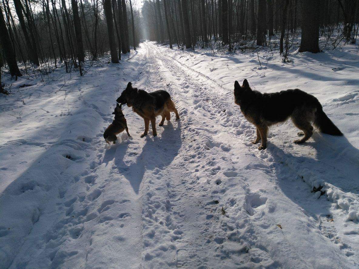 Zaczęły się ferie i przyjechał do nas Max. Lerka dosłownie objęła go łapkami za szyję i zawisła na jego wargach. Bliss przyjęła gościa spokojnie i bez nadmiernej wylewności. Ponieważ często się widują, w domu i na spacerach panuje zgoda. Tylko ilość spacerów nam zdecydowanie wzrosła, bo z dwoma ONkami na smyczy i doczepioną do nich Lerką, nie da się spacerować po mieście, a luzem, nie lzia ;). Dzisiaj czekamy na psie chrupki, jutro mam lekarza, ale w środę zabieramy całe towarzystwo na spacer po lesie. Ale będzie zabawa :). Max pozdrawia starych znajomych :) -