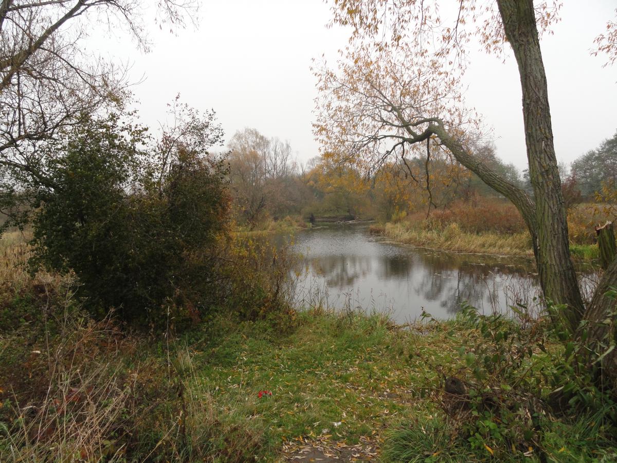 Chociaż sobie jeszcze podskakuję, to z tą młodością, nie za fajnie ;). Nie możemy chodzić na psacerki na łąki przy rżysku pokukurydzianym, bo je posypali jakąś azofoską i są białe i niewątpliwie, nieodpowiednie do psich spacerów. No, to chodzimy nad Orzyc - niestety, trochę dalej od nas, ale ładniej. Tam (niestety), są albo krowy - które koniecznie chce ganiać Lerka, albo pozostałości po krowach, którymi zainteresowana jest Bliss......No, to obok krów, Lerka idzie na smyczy, a tam gdzie są pozostałości, dostaję kręczu karku, bo muszę patrzeć i pod nogi i na Bliss, która jak zwykle idzie pół kroku za mną...... Co jakiś czas, Bliss postanawia a przywołać do porządku wałęsającą się Lerkę, a ja muszę patrzeć, czy ta lekcja, nie przebiega na krowich plackach, których dookoła - dostatek...... Na zdjęciach, Orzyc jesienią, łąki i pola nadorzyckie , krowy i psy -