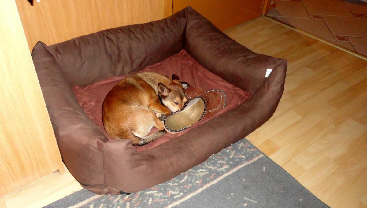 Miło nam :). Pogoda piękna, więc pojedziemy na spacer do lasów działkowych. Tam na lesnych dróżkach, tylko ściółka, więc pewnie będzie sucho. Za to nad Narwią - pewnie mokro. Jak zdążymy, to zobaczymy :). Tymczasem, obiecane Mattilu zdjęcie Lerki, wtulonej w słodkim śnie w kapeć TZta. Dzisiaj Lerka próbowała po raz kolejny namówić Bliss na wspólne spanko (jak to jest, że u Nutusi wszystkie śpią razem?) - i jak zwykle nie udało się :(. Ale postęp jest, bo Bliss zerwała się z posłanka nie natychmiast, tylko po minucie :) -