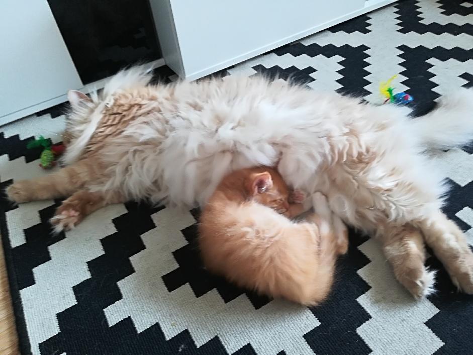 I jeszcze wieści z DT czekoladowego i rudego malucha łazienkowych na początku przez Dorę. Teraz mają na imię Astor i Rufus. Astor miał 2 wizyty u profesora okulisty, udało się uratować oczko przed amputacją, może nawet będzie cokolwiek na nie widział. Dzielny Astor był wczoraj na 2 wizytach w różnych częściach Wrocławia. Dalej obydwaj mają krople do oczu, ale od dzisiaj są bez antybiotyków. Kociakami bardzo dobrze opiekują się rezydenci- wyliżą, prztulą, dopilnują :) Pani która oferowała im awaryjny DT jest cudowna i w ogóle brak mi słów