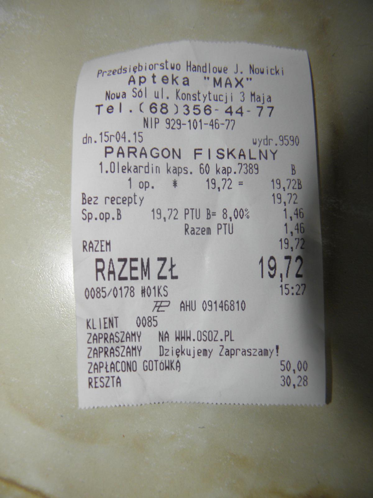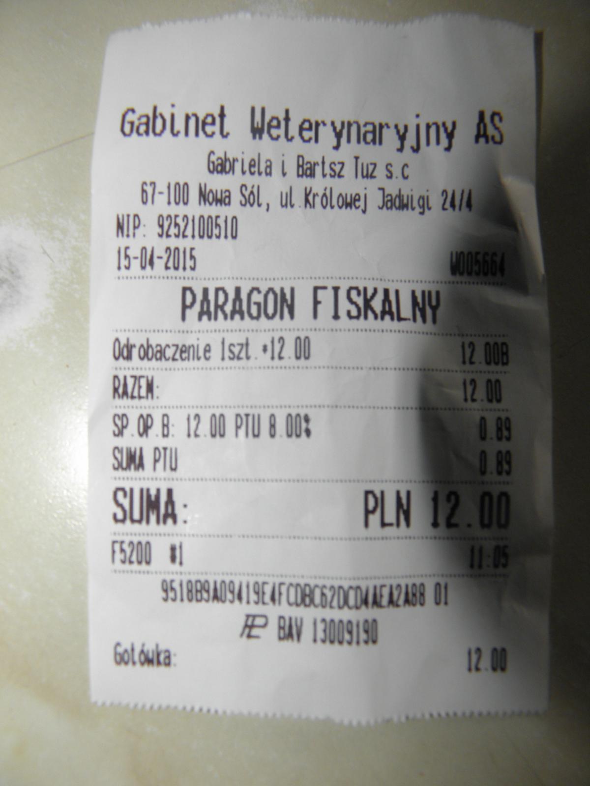 21. Paragon za odrobaczenie. W przyszłym tyg. pójdę na szczepienie.