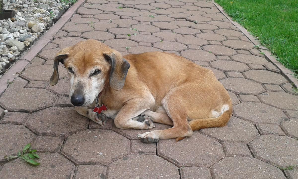 4. Maksik wyleguje się na dworze na nagrzanym przez słońce chodniku :)