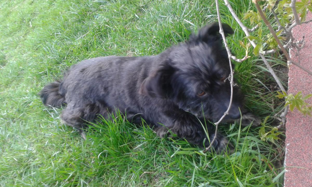 3. Dzwoniła do mnie Pani, która pisała z Anulą. Powiedziała, że nie może przyjechać wcześniej, niż w czerwcu, aby zobaczyć Blekiego. Jak się zdecyduje to napisze do Anuli i zadzwoni do mnie, że chce go odwiedzić. Na zdjęciu zamyślony Blekuś, leżał przy mnie, gdy pieliłam ogródek :)