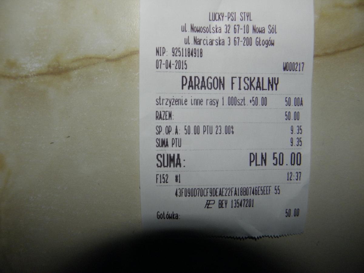 Przepraszam, ale przeoczyłam pytanie o karmę. Jest to Brit M, w załączeniu paragon. Bleki ma teraz mięciutką sierść, o wiele milej się go głaszcze. Na zdjęciach widoczna jest wyłysiała plamka, nie jest to rana i już są na niej odrastające włoski. Blekuś jest wykastrowany, więc mam nadzieję, że z tym obsikiwaniem mu przejdzie. Według moich obserwacji psiaczek z pewnością nadaje się do domu z dziećmi. Jest zaczepny, ale ostrożny, lubi się bawić i nie jest agresywny. Jest zwariowanym kanapowcem, który rozweseli każdego :)