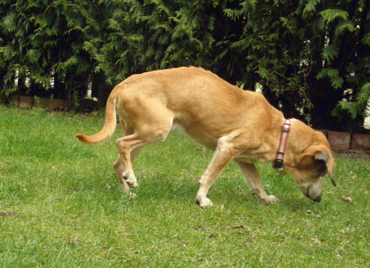 Adresówka została założona od razu, jak tylko Maksiu dostał ją od Anuli, czyli kilka dni po jego zamieszkaniu u nas. Maksik je większe porcje niż Bleki, zawsze ma dosypywane, gdy widzę mniej niż pół miski jedzenia. Miałam kiedyś suczkę staruszkę, która też jadła sporo, a była chuda. Czytałam artykuł w książce o tym, że psy starsze nie przyswajają tak jak młodsze (z resztą tak jak to się dzieje u ludzi). Może on już tak ma? Kręgosłup mu wystaje, ale raczej jest to zwyrodnieniowe zagadnienie. Kupię olekardin.
