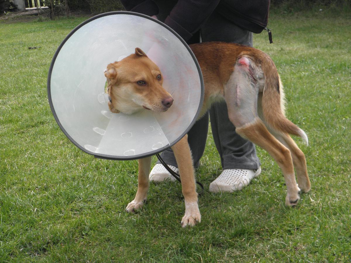 Uff, kilka chwil strachu i nieprzespana noc, ale okazało się, że nie jest źle. Dzisiaj kilka lekarzy, w tym chirurg debatowało nad Selmą. Stwierdzili, że nie ma potrzeby operować. Zostało zrobione zdjęcie rtg dla pewności. Selma dostaje antybiotyk Amoksiklav, tabletki przeciwbólowe i przeciwzapalne cimalgex, oraz żel przyspieszający gojenie Ozonium i witaminę C. Musi mieć założony kołnierz 24 h/dobrę :( Trzymajcie kciuki za Selmę, za jej cierpliwość. -