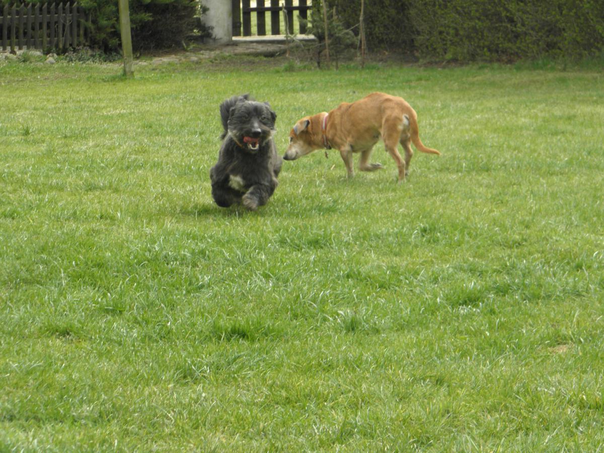 Badanie krwi Maksika wykazało, że ma lekką niedoczynność tarczycy, ale (jak zaznaczono) wyniki mogą być spowodowane również innymi dolegliwościami u psa. Dostanę jutro jakiś lek wspomagający tarczycę. Z badań wyszło równiez, że nerki pracują prawidłowo. Z badań kału wynika, że Maksiu ma jakieś pasożyty, które nie giną po podaniu tradycyjnej tabletki na odrobaczenie. wprowadzimy około tygodniową serię leków. A oto Maksik z Blekim :) Maksiu lubi podążać za innymi psiakami i im towarzyszyć.