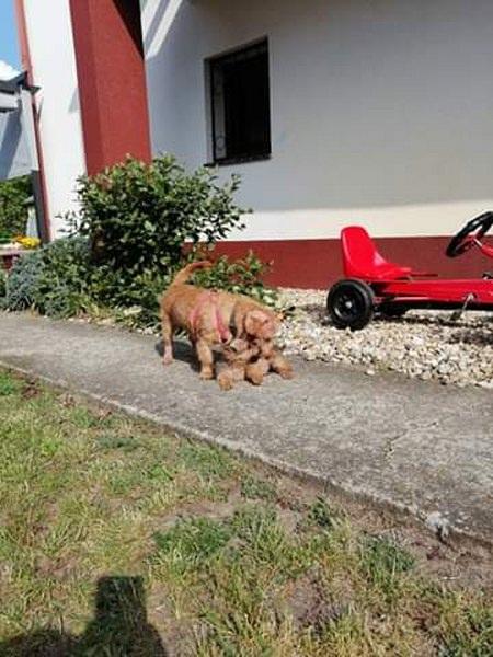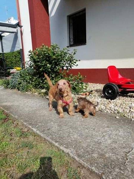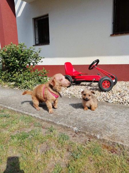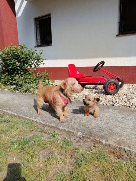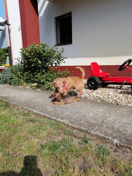 Bixi jest cudowny. Ma cudowną mamę, która pokazuje mu przyjaźń do człowieka i nie każe się go bać, dzięki temu maluch jest ufny i beztroski. Teraz będzie już tylko rozpieszczany. W domu szczeka i broni hihi, na dworze wszędzie za Reszką biega, pilnuje się bardzo. Może jak pozna nas i teren, to będzie swobodniejszy i bardziej zaciekawiony np. ogrodem.