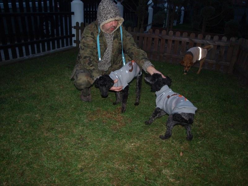 Nie, nie robiłam im badań krwi. Kupię olekardin. Sarze założyłam sweterek, który nosiła Holi i Teo na początku, większego nie mam, więc założyłam Majce ten po Alis, ale tam weszłyby dwie Majki i jeszcze byłoby miejsce :( Daję im jeść w małych porcjach, ale często, żeby im żołądka nie rozwalić. Sara w kłębie 38 cm, Maja 40