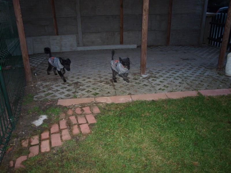 Maja rzeczywiście wygląda na młodszą i zachowuje się trochę szczenięco. Nie ma opcji, żeby została sama bez Sary, od razu krzyczy, drapie w drzwi, szuka możliwości wyjścia. Sara bez Majki pozostaje spokojna. Sara ma sierść skręconą jak u pudli, Maja ma bardziej prostą, jest rzeczywiście większa, więc to na pewno jakiś miks.