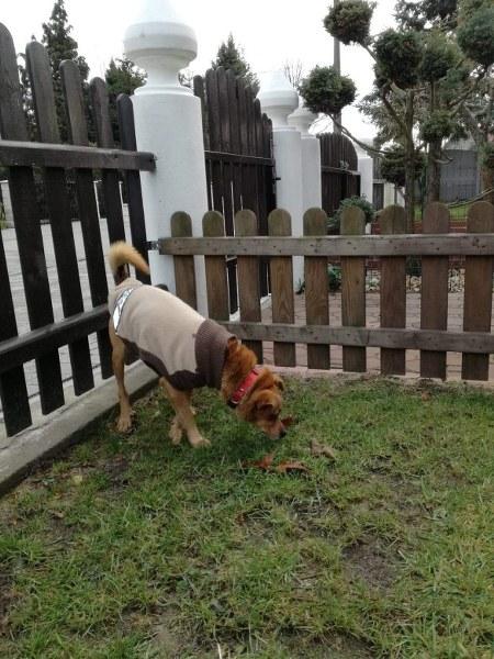Teo jeszcze nie ma kontaktu z innymi pieskami, ale słyszy je i jest zaciekawiony odgłosami. Jego głównym zajęciem w ciągu dnia jest spanie, oprócz tego chodzi sobie, obwąchuje, nasłuchuje, jak jesteśmy z nim, to chętnie poddaje się wszelkim głaskom i mizianiom. Na dworze idzie już pewniej, po węchu zaczyna chyba rozpoznawać swój teren. Obecnie wychodzi na malutki wybieg, by dać mu jak najwięcej poczucia bezpieczeństwa. Dostaje sporo jedzonka, więc w nocy zdarza mu się zrobić kupę, ale siku i kolejne kupy robi zdecydowanie na dworze - mądry i kulturalny psiuniu.
