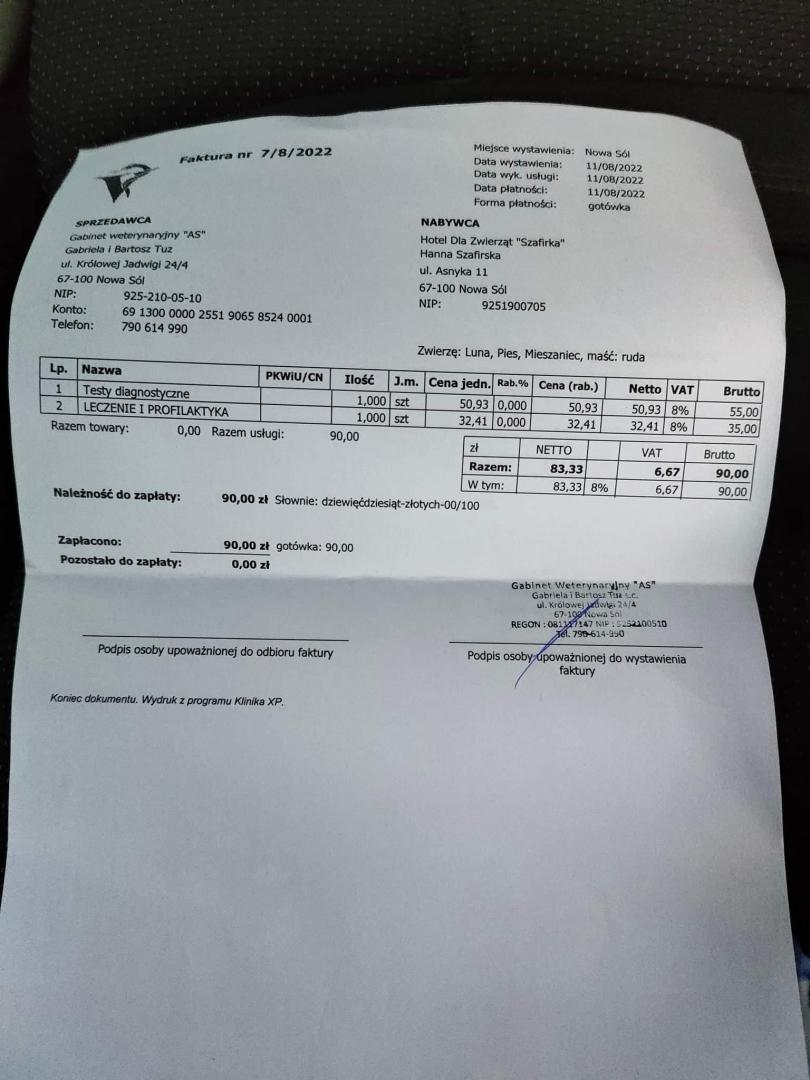 Zojka to bardzo fajna sunia, otwarta, rozszczekana, zainteresowana całym światem na raz Zna smycz, nie przepada za pozowaniem do zdjęć, może jak już wszystko pozna, to zatrzyma się na chwilę. Jej sierść jest w fatalnym stanie, najlepiej byłoby ją ostrzyc, żeby skóra odpoczęła i włos odrósł zdrowo. Za chwilę zostanie odrobaczona, dostanie krople na pchły i kleszcze.