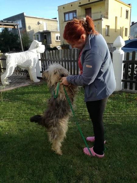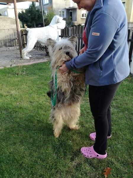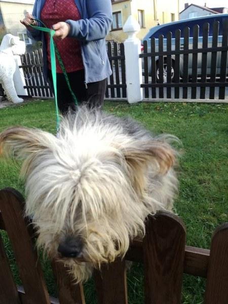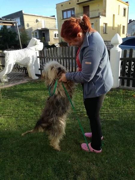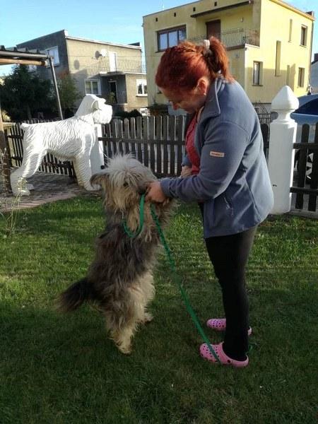 Aleks już w domku. Ledwo chodzi od tych dredów, wszystko go ciągnie, jego sierść jest w okropnym stanie. Aleks jest bardzo pozytywny, przywitał się chętnie, zrobił obchód po ogrodzie i położył się na legowisku. Wydaje się duży, ale jak obetniemy te 3 kg kołtunów, to może okazać się szczuplutkim chłopaczkiem.