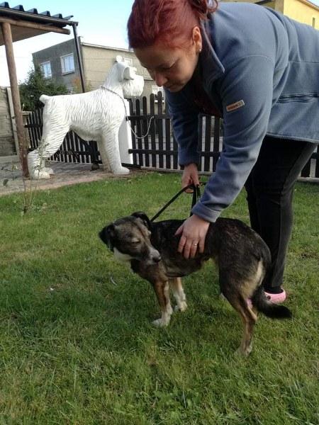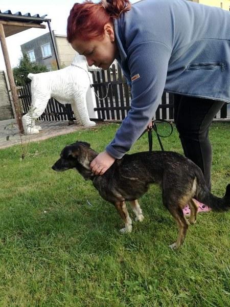 Lalunia może nie jest chuda, ale szczupła. Była chyba domowym pieskiem, bo lubi krzesła, towarzyszy nam przy jedzeniu, aczkolwiek średnio utrzymuje czystość w domu. Lala lgnie do człowieka, przytula się, siada blisko, ale boi się naszych szybkich ruchów, albo jak chcę jej np. zapiąć smycz. Toleruje psy, koty i dzieci.