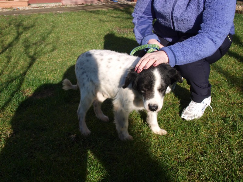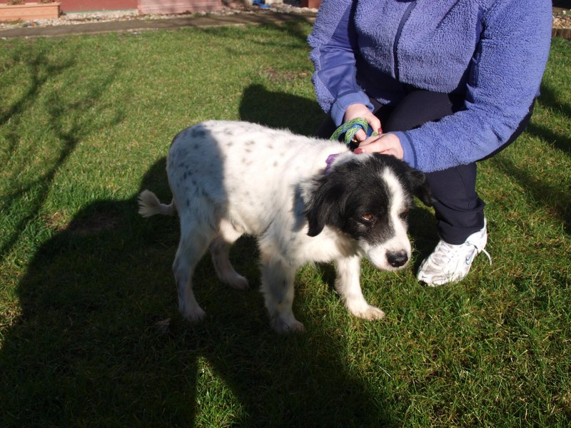 Nikt do mnie nie dzwonił, a myślałam, że zdjęcia takie fajne wyszły :( Dla mnie jest on śliczny, piękny, kochany, cudowny ... Bobik zaczął interesować się człowiekiem i przychodzić po głaski, jednak on sam decyduje ile i kiedy. Zawsze już jednak coś :) Czasami nawet podskakuje i zaczepia :) Mika niestety bez zmian, niby wszędzie jej pełno, kręci się między nami, jest wyluzowana, bawi się z psiakami radośnie. Wystarczy ruch człowieka i jest afera, np. myję naczynia, a ona za mną, dotykając moich nóg bawi się z innym psiakiem i w tym momencie ja robię delikatnie krok w prawą stronę by wziąć szklankę i ona mało mi na stół nie wskoczyła. Jest wiele podobnych sytuacji. Mika nie potrafi przekonać się do kontaktu z dłonią, mogę ją tylko posmyrać po nosku przy okazji dawania smaczka. Powiedziałam dzisiaj Bogusi, że zaczynam czuć się bezsilna.