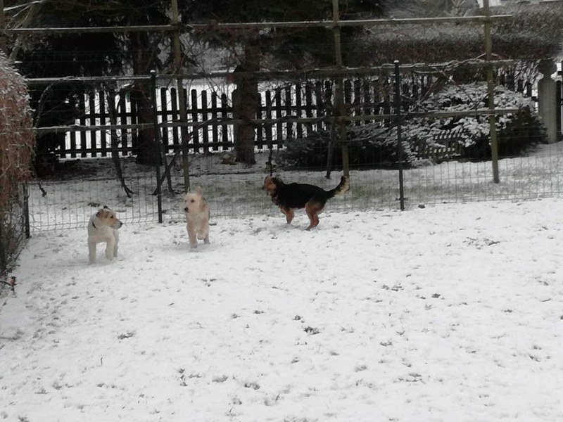 Nikt więcej nie dzwonił do mnie oprócz Pana z Lobonia. Psiaki ostatnio zostały zaszczepione na choroby zakaźne, wcześniej były odrobaczone. Rafi waży 17 kg, w kłębie ma 46 cm. Tofik waży 13 kg, w kłębie ma 41 cm. Dunię na razie nie męczyliśmy pomiarami. Wiek określony przez naszego weta tak jak schroniskowego.