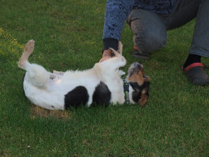 Teoś ożył po odrobaczeniu, zaczął biegać, podskakiwać. Wyszło z niego życie wewnętrzne, a wróciło to prawidłowe :) kupy są zwięzłe, takie jak trzeba. W piątek znalazłam probiotyk i siemię po innym psiaku, więc zaczęłam podawać to Teosiowi. Jutro, albo pojutrze jak przyjdą tabletki od Anuli, to jeszcze tym wzmocnimy przewód pokarmowy przystojniaka.