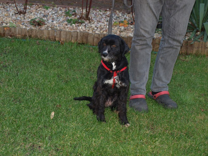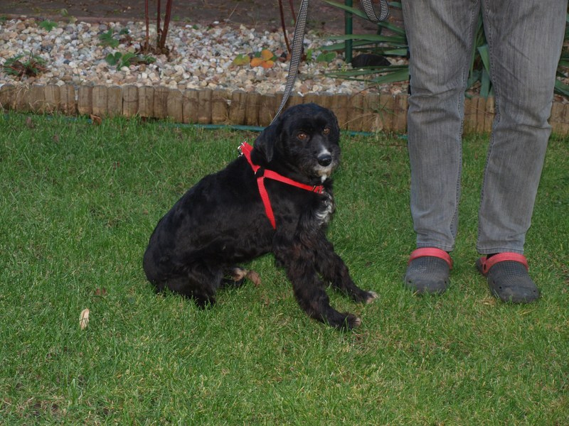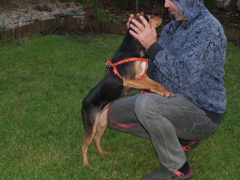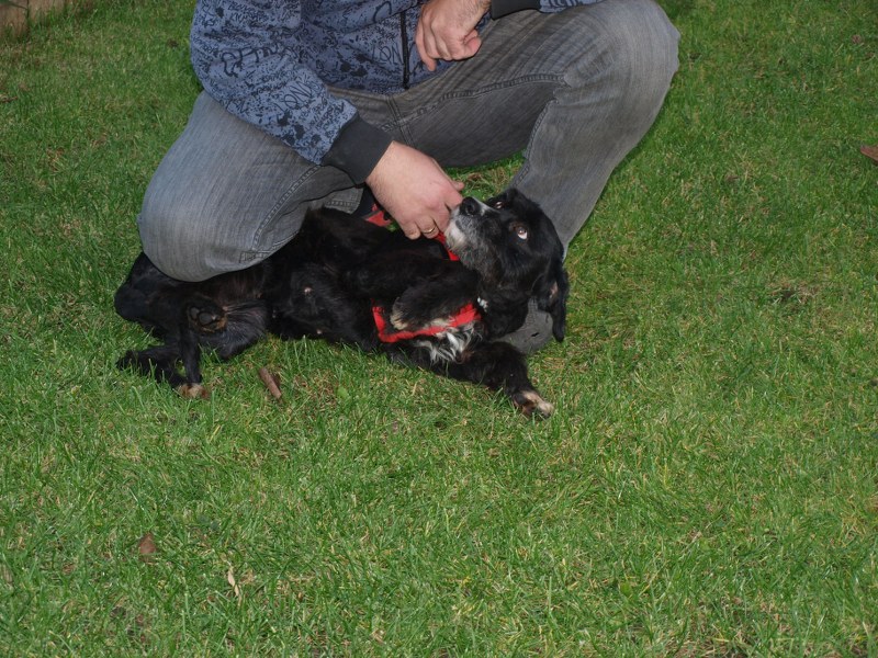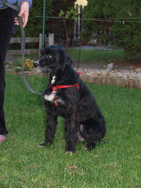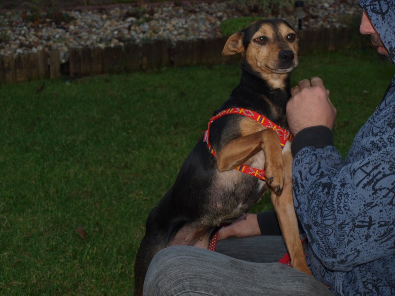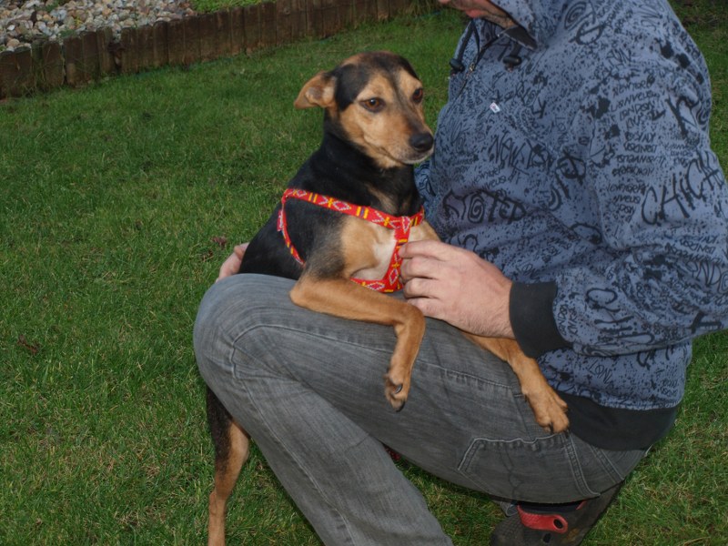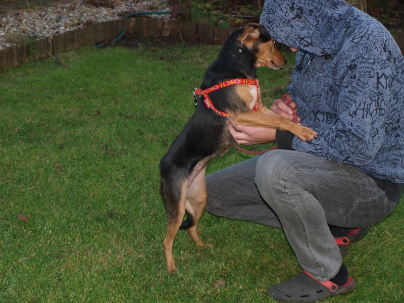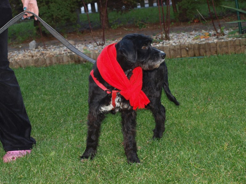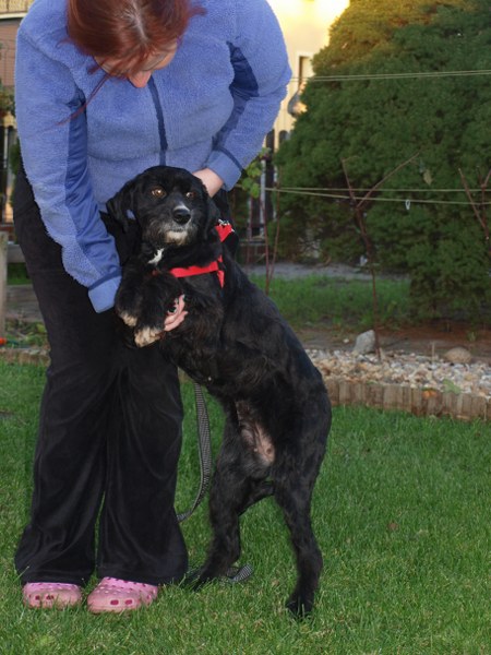 Teoś tak jak już pisałam ma 43 cm w kłębie, zmieniła się waga - 11,1 kg. Toleruje psy i koty, uwielbia ludzi, w tym dzieci. Jest obecnie radosny, ruchliwy, biega, skacze, widać, że jest mu dobrze. W końcu nic go nie boli i nie je od środka. Utrzymuje 100 % czystość. Nie wyje i nie szczeka, nie niszczy jak zostaje sam. Fajnie chodzi na smyczy. Dzisiaj przyszła animonda. -
