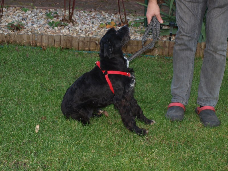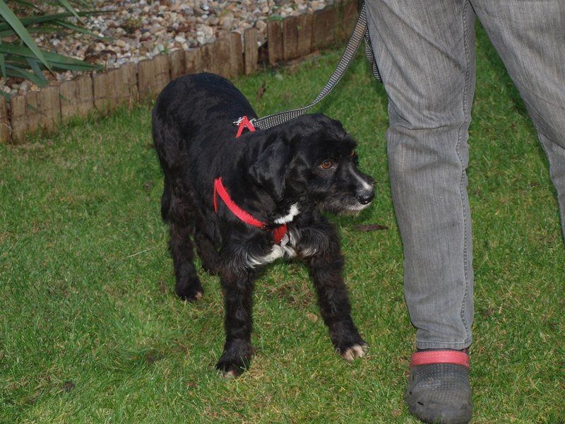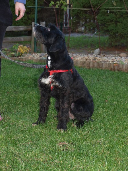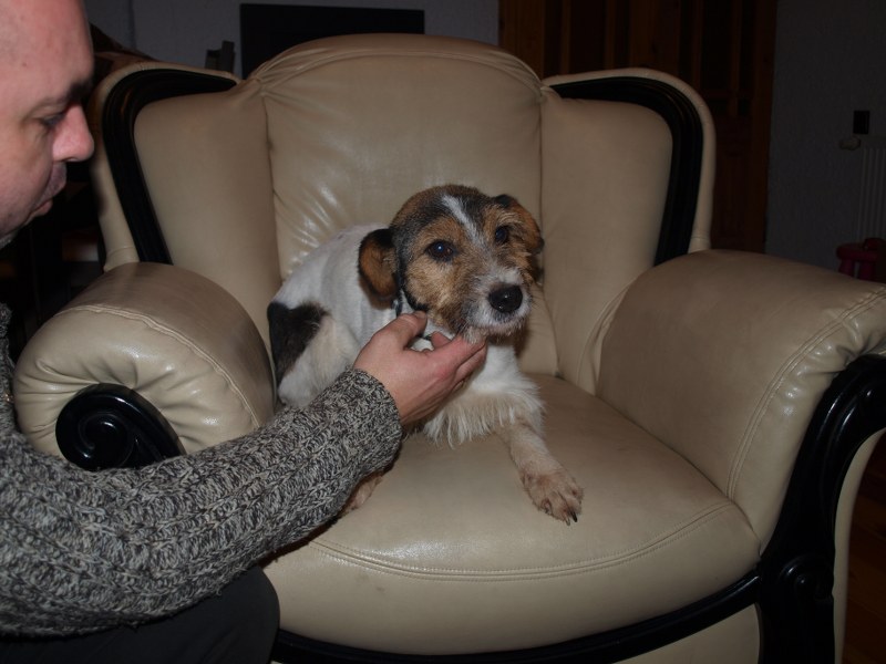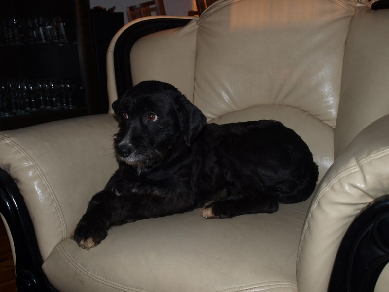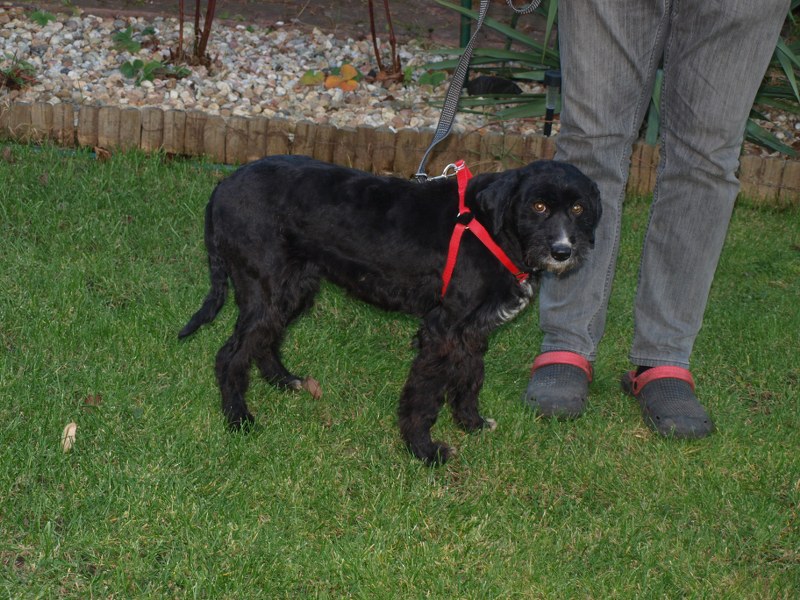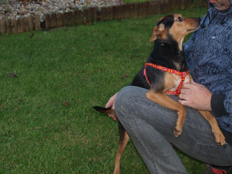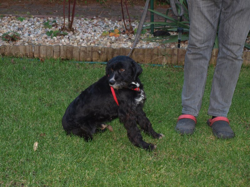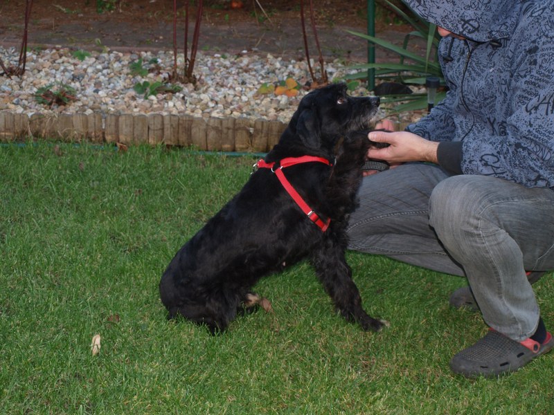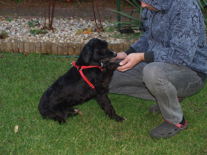 Teoś tak jak już pisałam ma 43 cm w kłębie, zmieniła się waga - 11,1 kg. Toleruje psy i koty, uwielbia ludzi, w tym dzieci. Jest obecnie radosny, ruchliwy, biega, skacze, widać, że jest mu dobrze. W końcu nic go nie boli i nie je od środka. Utrzymuje 100 % czystość. Nie wyje i nie szczeka, nie niszczy jak zostaje sam. Fajnie chodzi na smyczy. Dzisiaj przyszła animonda. -