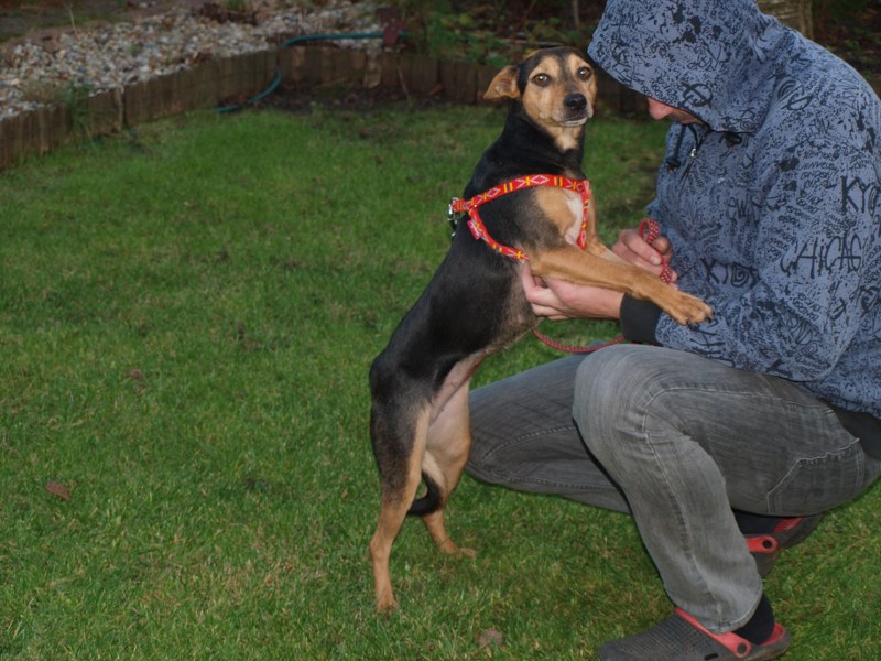 Lotka to baaaardzo pozytywna dziewczynka. Całą sobą cieszy się z kontaktu z człowiekiem, z tego, że ktoś ją głaszcze, że w ogóle jest. Czasami nie można przejść, bo skacze bez przerwy na nogi zwracając na siebie uwagę. Taki pieszczoch za kratami Radys? nieeee :) Lotka była u weta, jest zdrowa, więc zrobię w najbliższych dniach zdjęcia i niech świat ją zobaczy.