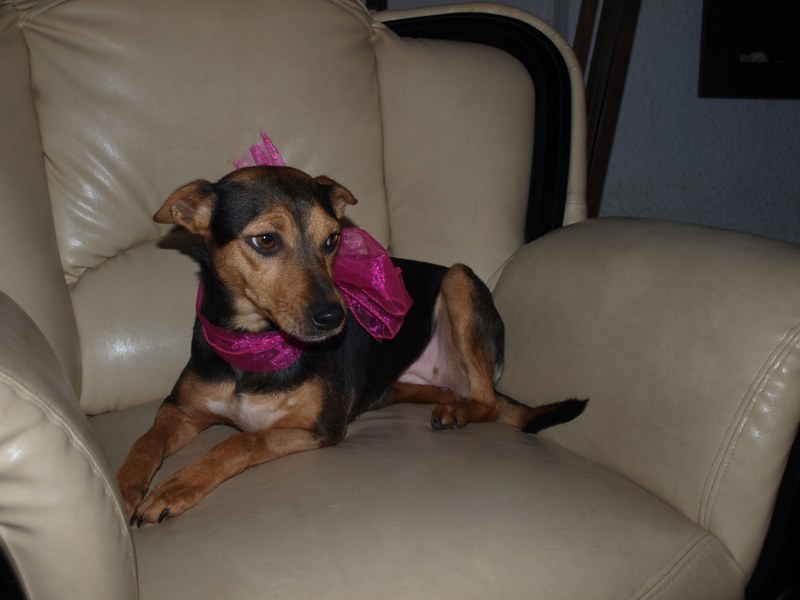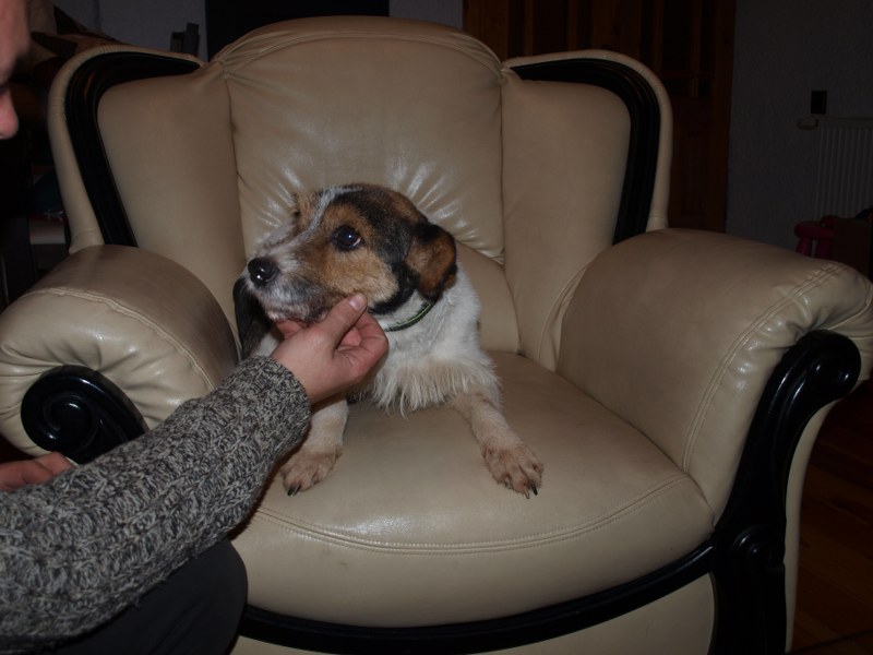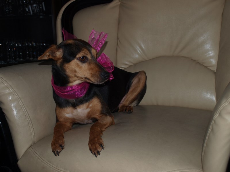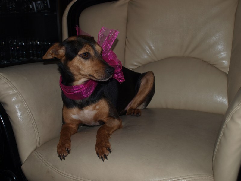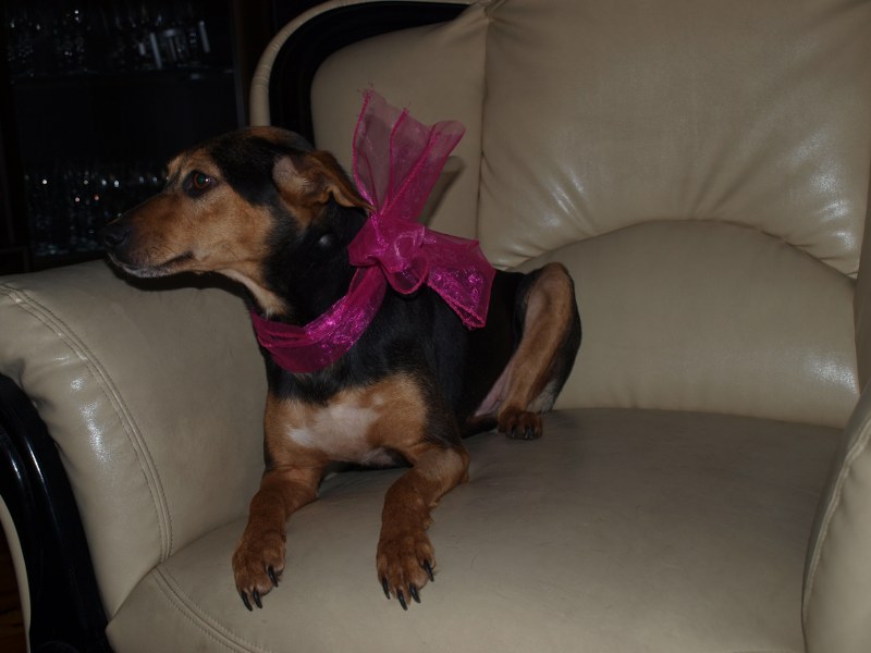 Malwina to coraz większa spryciula. Podkrada ze stołu albo blatu coś co ją interesuje i kładzie sobie w legowisku. Ostatnio podsiadła koleżankę na legowisku jak ta wstała przywitać mojego męża. Szczeka na nowe psy i niektórych ludzi - gości. Smaczka nie weźmie z ręki, ale jak jej położę przed pyszczkiem i czekam, to zje. Kiedy stawiam miskę z jedzeniem od razu podchodzi do mnie, mogę ją wtedy dotknąć dłonią i nie ucieka. Kiedy wołam ją np. do kuchni, to nie przyjdzie, ale jak wołam wszystkie psiaki, to od razu przychodzi. Malwina jest typem kanapowca - na dworze chwilę pobiega, pogania, ale w domu głównie wyleguje się.