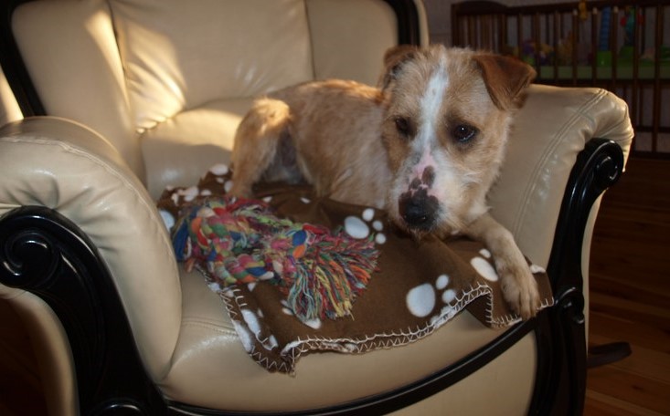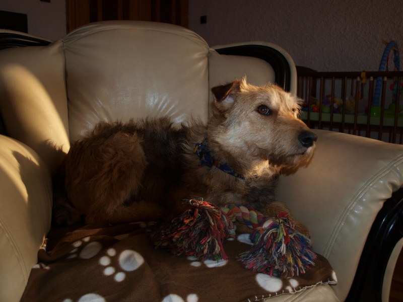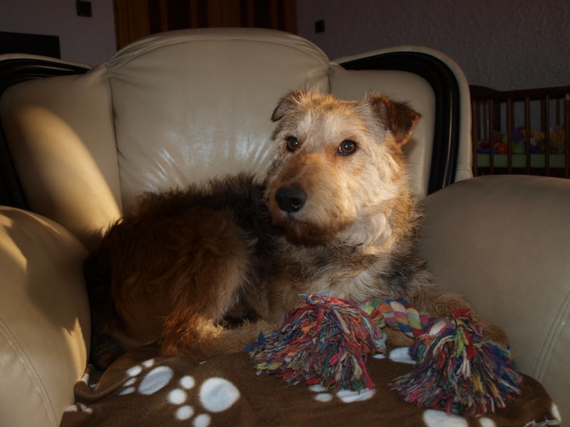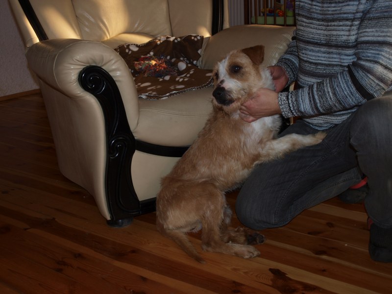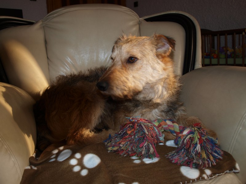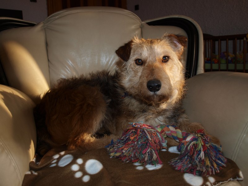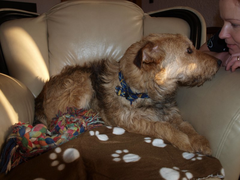 Żaden fotel nie jest tak wygodny jak mój :) ale Fosterkowi będzie wystarczyło, że zamieszka w domu. Może to być dom i blok, ale właściciele aktywni, ponieważ Foster potrzebuje dużo ruchu. Uwielbia biegać, bawić się głównie z człowiekiem. W związku z tym, że Foster skacze, myślę, że nie nadaje się do malutkich dzieci. Kota naszego goni, wśród psów jest dominatorem i potrafi pokazać ząbki, jeśli pójdzie coś nie po jego myśli. Je dużo, jak skończy, to wygania inne psiaki od ich misek, dlatego karmiony jest osobno. Dostaje oczywiście większą porcję jedzonka. Foster jest pieszczochem i myślę, że najszczęśliwszy będzie jako jedynak, który chodzi często na spacery lub ma do dyspozycji ogród. To chyba tyle, odpowiem na pytania, jeśli o czymś zapomniałam wspomnieć. Fundacja ZEA sfinansowała 20 kg suchej karmy, która smakuje Fosterkowi.