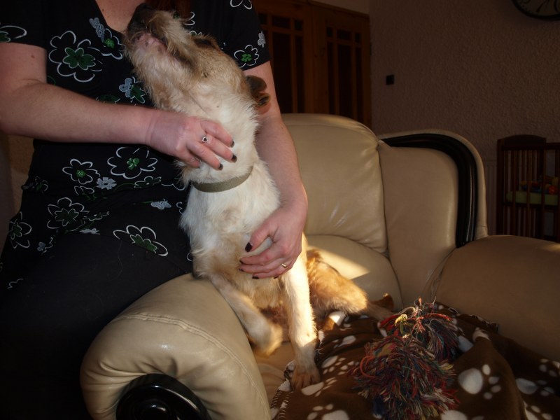Nikt nie dzwonił w sprawie psiaków a to takie przytulaki kochane :( Teri zjadł i przeciąga się zadwolony :) -