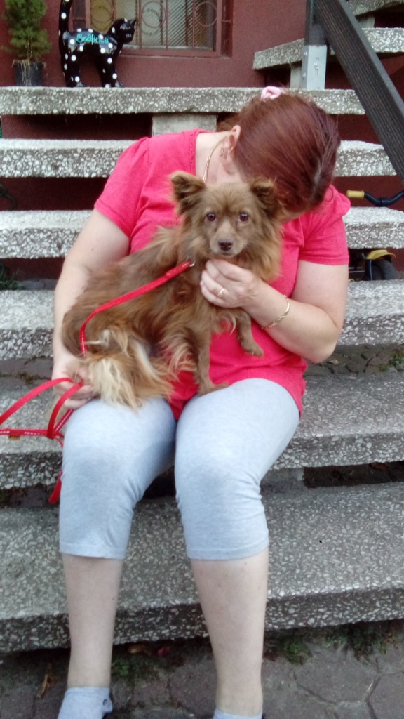 Ja jestem zakochana, nie wiem jak ją oddam :( Kiedy tylko ją biorę, ona od razu wspina się i wtula w moją szyję. Dzisiaj Czika była u weta. Waży całe 3,5 kg. Dostała kropelki na pchły i kleszcze i tabletkę na odrobaczenie. Rana jest ładnie zagojona. Wet określił, że sunia ma ok. 7 lat. Pytałam o szczepienie, wet zaproponował, aby odczekać tydzień, a więc wybiorę się z nią w przyszłym tygodniu. -