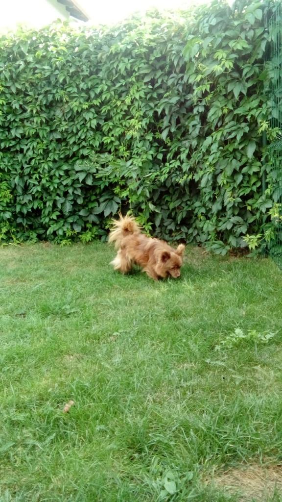 Noc minęła cicho i spokojnie, rano poranna toaleta i śniadanko. Czika dzisiaj pohasała po ogródku, przybiegała, gdy się ją wołało, więc można było odpiąć smycz. Bardzo ważny jest dla niej człowiek, jego bliskość. Jutro umówię ją do spa, ma trochę kołtunów zwłaszcza przy ogonie. -