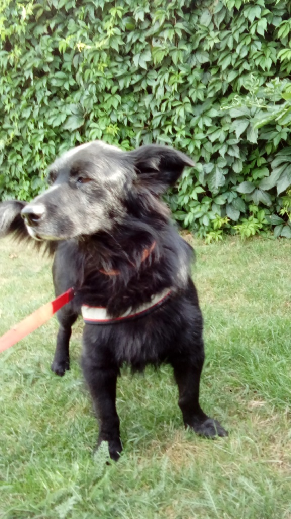 Wróciliśmy niedawno od weta. Murzynio ma dalej zaropiałe oczko, wet powiedział, że to uraz mechaniczny, przepisał 2 rodzaje kropel i żel. Mam smarować i zakrapiać 4 razy dziennie i za tydzień podjechać do kontroli. Wet zaproponował, aby zaszczepić go co najmniej za tydzień, oczywiście pod warunkiem, że oczko wydobrzeje. Psiak ma ok. 5 lat. Ja, ani mój mąż nie zauważyliśmy, aby Murzynek kulał, długo to trwało przed przyjazdem do nas? Wet na moją prośbę sprawdził łapkę, nie zauważył, aby coś było nie tak w stawach, ani, żeby miał uszkodzone opuszki - wygląda, że wszystko jet dobrze. Dzisiaj zjadł już całe porcje jedzenia od razu, bez kręcenia nosem. Mieszamy mu suche z puszką. Przyjechały do nas 3 puszki i będę musiała trochę dokupić zanim się przyzwyczai do samego suchego. Fryzjer umówione na czwartkowe popołudnie.