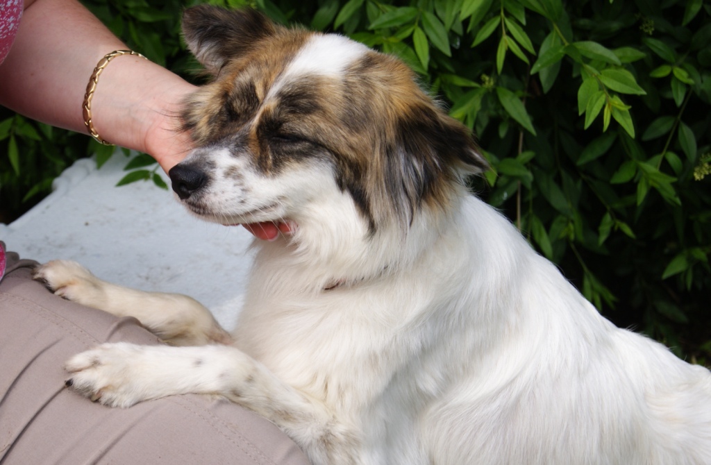 3. Sandi będzie potrzebowała kilku dni na zaufanie i rozkręcenie, ale widać postępy - rano była niepewna, przestraszona, a wieczorem już troszkę rozluźniona. Rano nie chciała dać sobie założyć obroży, ale jak już wzięłam ją na kolana, to położyła się, zmrużyła oczy i nie miała zamiaru się ruszać :) Do auta wskoczyła od razu, położyła się i dopiero jak na miejscu jak wzięłam smycz, to wyszła Pani. Niestety 50 metrów z auta do fryzjera musiałam ją nieść, ponieważ zapierała się, nie chciała iść, próbowała uciekać pod każde stojące auto. Czeka nas nauka chodzenia na smyczy i spacery po osiedlowych uliczkach. U fryzjera podczas czesania była cierpliwa i grzeczna, natomiast kąpiel i suszenie ewidentnie jej nie pasowało, wyrywała się, chciała wyskoczyć, popiskiwała. W żadnym momencie nie było w niej agresji. Wczoraj zjadła niewiele, a dzisiaj od razu, ale spokojnie skonsumowała podane jej porcje. Mimo, że jest chuda, to nie zachowuje się jak pies wygłodzony. Jutro będą zdjęcia.