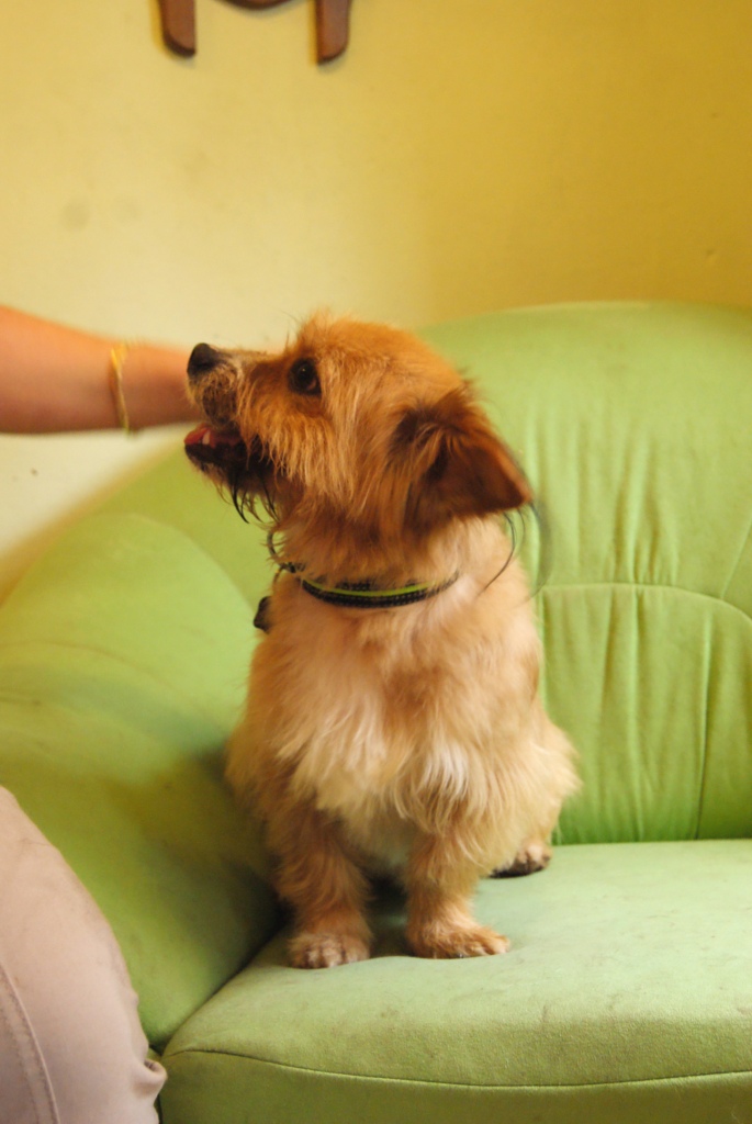 4. Pufi rzeczywiście jest mniej zestresowany niż Sandi, bez problemu wychodzimy z domu i potem za mną do niego wraca. Gdy włożyłam go do samochodu, położył się jakby jeździł nim od zawsze. Drogę z samochodu do fryzjera przeszedł też w miarę spokojnie, chociaż rozglądał się czujnie i nasłuchiwał. U fryzjera grzecznie poddał się wszelkim działaniom, aczkolwiek kąpiel nie jest mu znana, albo nie przepada za nią. Jutro będą zdjątka. Wczoraj był tak zmęczony, że zjadł niewiele, głównie pił wodę, dzisiaj zjadł chętniej swoją porcję. Pieski u nas w hoteliku dostają karmę 2 razy dziennie.