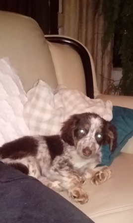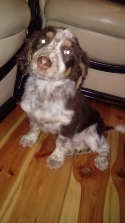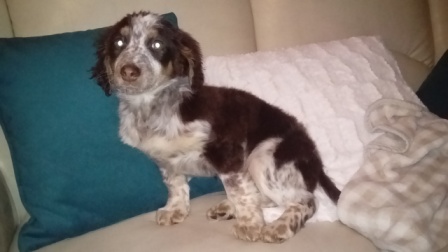 18. Rambi jest bardzo grzeczny jak na spanielka, nie szczeka nadmiernie, bez problemu zostaje sam, nie niszczy. Musiał odstąpić Effi fotel - takie było jej zarządzenie, ale gentleman się z tym pogodził, śpi na sofie teraz. Na środę jestem umówiona do weta, aby sprawdził dokładnie jego uszy.