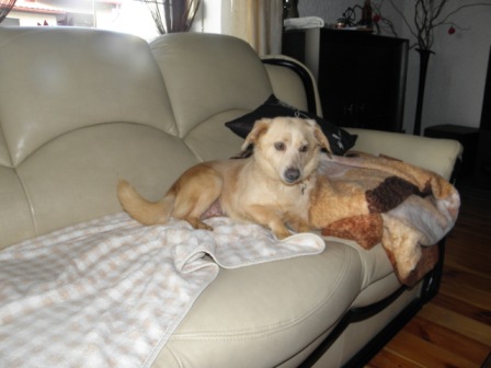 6. Chciałam wrzucić zdjęcia, ale przeglądam je i okazuje się, że na wszystkich Tofik ma świecące oczy. Będę musiała juto zrobić powtórkę. Tofik ma się już dobrze, zaczął biegać, bawić się, zaczepiać. Beza najfajniej z dorosłych bawi się ze szczeniakami, biega z nimi, jest cierpliwa i ich obecność sprawia jej jakąś tam radość. Beza wie co to fotel, co to smaczki, a więc chyba była domowym psiakiem i to jeszcze nie tak dawno. Kiyoshi dziękuję za miłe słowa :)