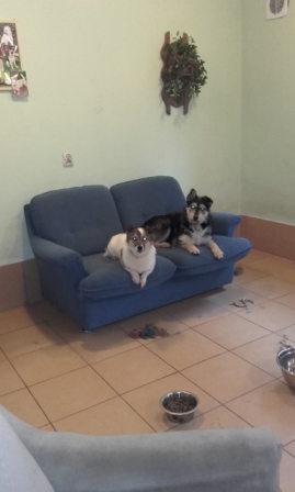 Daszka jest coraz odważniejsza. Myśle, że jest nie tyle lękliwa, co nie potrzebująca wielkiej bliskości człowieka. Rano wita mnie zawsze szczerze, ale nie lubi jak bierze się ją na ręce i tuli. Ona podchodzi, szturcha noskiem, żeby ją pogłaskać, ale nie chce siedzieć na kolanach, a nawet obok. Może to się jeszcze zmieni. Mam mieszkanie monitorowane, więc wiem, że Daszka grzecznie zostaje sama, co prawda z innymi psiakami, ale jakby miała niszczyć albo wyć, to byłoby duże prawdopodobieństwo, że i teraz by to robiła. Oddala się już od Abi, ale lubi mieć ją w zasięgu wzroku. Czasami umknie mi jakieś pytanie, przepraszam i proszę tak jak to zrobiła Tola - o powtórkę :)