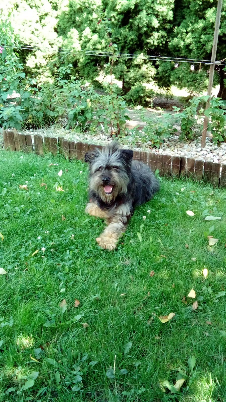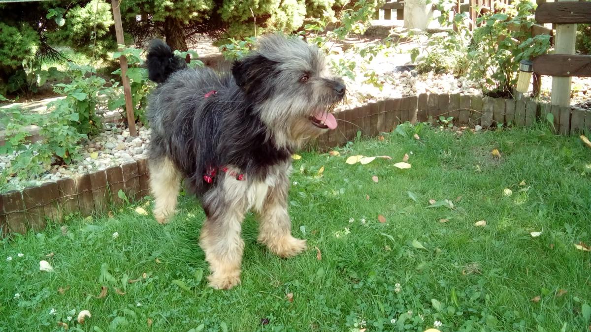 Sznupciu już u nas :) Zotał przejęty od pana w nocy ok. 2. Pozwoliłam mu pochodzić troszkę po ogrodzie, aby rozprostował kości, a potem pokazałam mu jego miseczki i posłanko. Nie pił wody, więc chyba pragnienie już w nocy nie bylo takie duże. Sznupciu nie spodobał się Zuli i szczekała na niego aż do rana, ale teraz już jest OK - albo jej przeszło, albo się zmęczyła. Psiaczek jest bardzo otwarty do ludzi i innych psów, przywitał się z każdym z nowych towarzyszy merdaniem ogonka. Dzisiaj od rana zwiedzał nowe włości i wygląda na zadowolonego. Jest umówiony do fryzjera na wtorek.