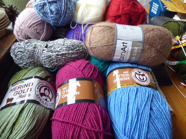 34. Śniegowe chmury Mitenki - ręczna robota, nowy - włóczka , Angora Star 20% wełny, 80% akrylu, CW 14,00 długość 19,5 cm. Otwór na kciuk do ustalenia z kupującym. 35. Z krainy mchu i paproci Komin - w trakcie dziergania - Tianku dla koleżanki - CW 35,00 35A. Mitenki - ręczna robota, nowe, 25% wełny z merynosów 75% akrylu, Merino Gold Batik, długość 20,5 cm , CW 17,00 Tianku dla koleżanki - CW 17,00 Otwór na kciuk do ustalenia z kupującym zdjęcie ze sklepu internetowego Kominy i mitenki mogą być zrobione na zamówienie. Przykładowe włóczki czekające na wykorzystanie. Wycena zamówienia na podstawie rodzaju włóczki i wielkości.