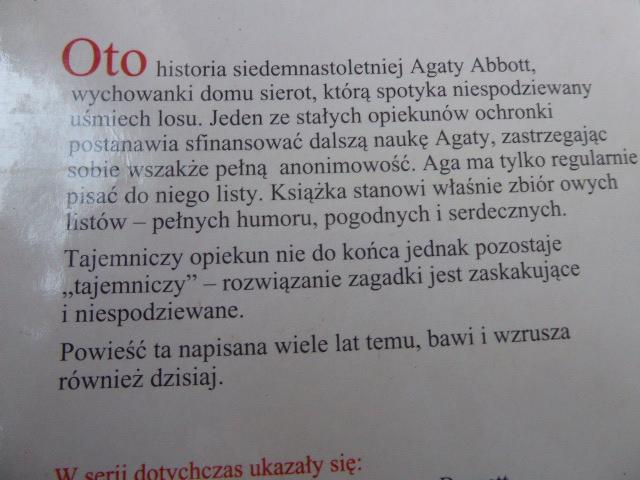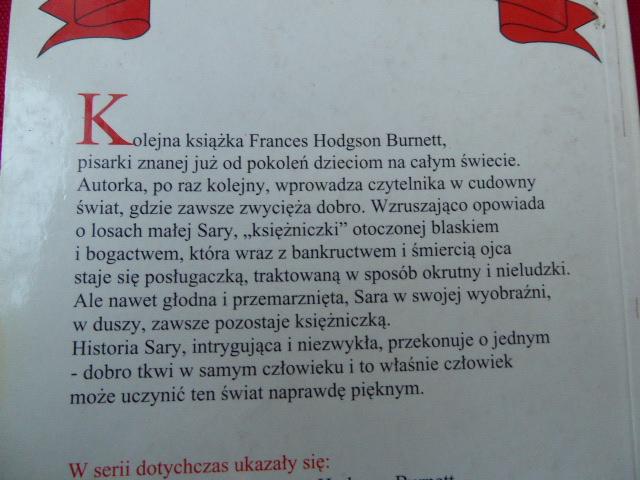 5. Jean Webster - Tajemniczy opiekun- miękka oprawa, stan bdb-, CW 6,00 6. F.H. Burnett - Mała księżniczka - miękka oprawa, stan bdb-, CW 6,00 7. C.S. Lewis - Opowieści z Narnii - Lew, Czarownica i stara Szafa- 2005, miękka oprawa, stan db+, CW 4,00 Grażka123 - CW 4,00 9. L.M. Mongomery - Dziewczę z Sadu -1989, miękka oprawa, stan db+, CW 3,00 10. Andrzej Maleszka - Magiczne drzewo. Czerwone krzesło -2009, twarda oprawa, stan bdb-, CW 9,00